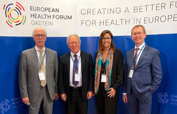 Photo (L-R): A/Prof Axel Hofmann, Christoph Zenger, Dr. Elvira Bisbe, Danny Havenith October 2019, Gastein, Austria A multi-sectoral panel of experts, including IFPBM President Christoph Zenger, IFPBM Vice President A/Prof Axel Hofmann, IFPBM Scientific Associate Dr. Elvira Bisbe and CEO of MercurHosp – Belgium Danny Havenith, were invited to discuss blood policy, Patient Blood Management…